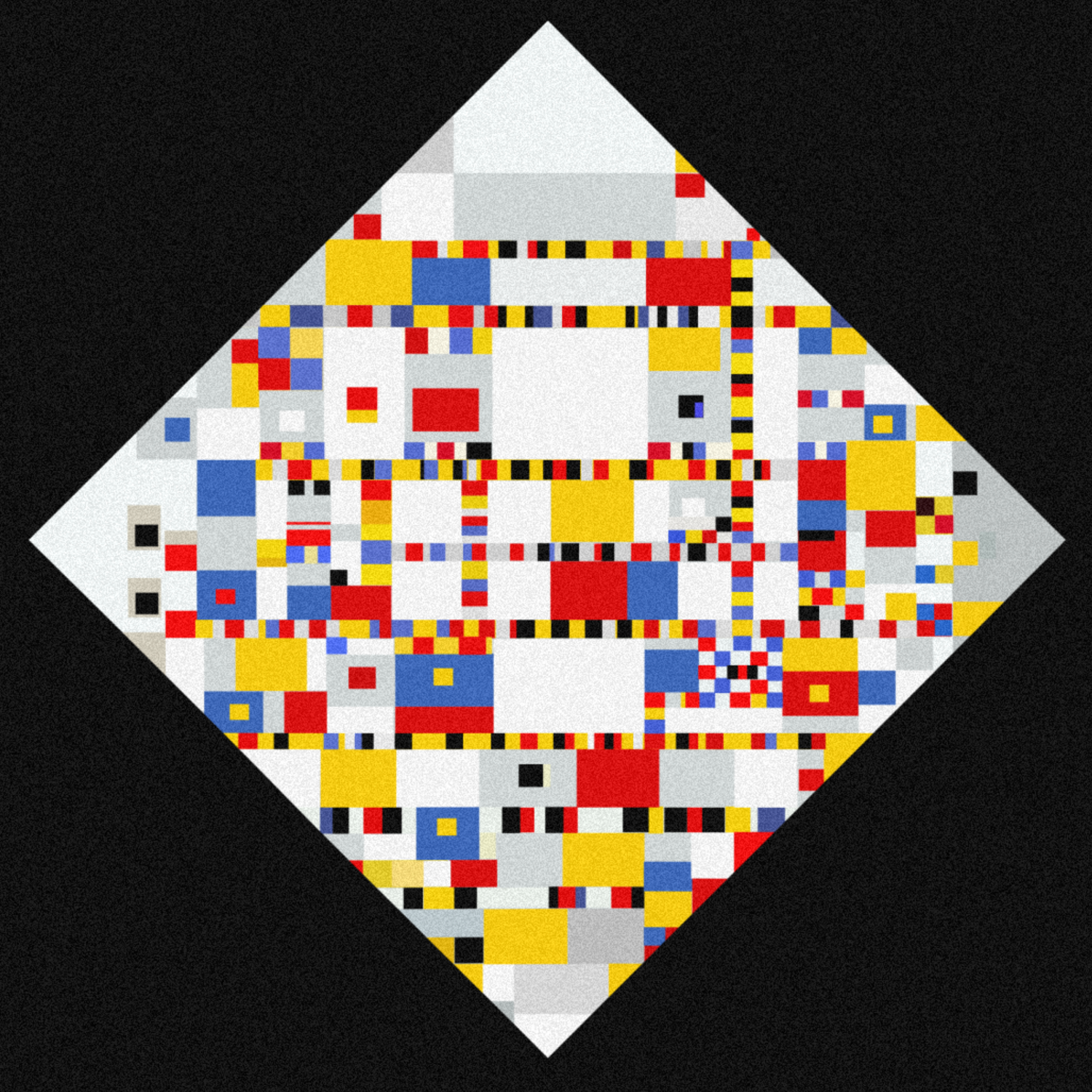 Victory Boogie Woogie — the last unfinished work, left incomplete when Mondrian died in 1944. This interpretation treats the piece as a missing loop, not as a restoration, but as a continuation of delay.
